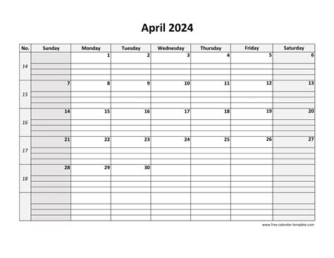 April 2024 Calendar Printable With Lines