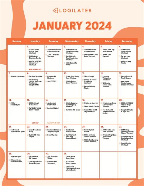 Blogilates January 2024 Calendar