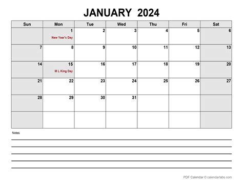 January Calendar 2024 with Holidays Calendar Quickly from calendarquickly.com